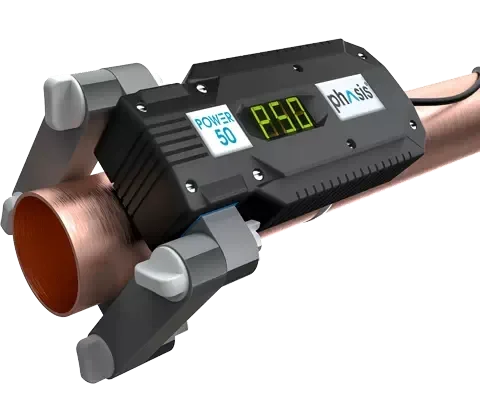 PHASIS Power 50 uporablja visokofrekvenčno indukcijsko tehnologijo, ki aktivno ščiti pred nastajanjem oblog vodnega kamna (inkrustacij) in hkrati odstranjuje že obstoječe obloge iz celotnega vodovodnega sistema in vodovodnih inštalacij.